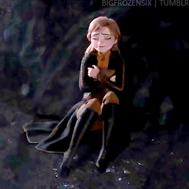 The moment that resonated with me the most was, interestingly, an Anna moment. (If you know me at all, you know my love for Elsa, based largely on her character development in the first film when she makes a deeply personal decision that flies in the face of what's expected of her; see the anecdote above for why.) But there's the moment for Anna, when everything seems lost -- Olaf is fading, which has is particularly gut-wrenching for Anna, because if Olaf is fading, it's because Elsa's magic is fading too -- and she has hit -- literally -- rock bottom. She's curled up on the floor, grief-stricken in a way that's much more poignant and mature than the end of "Do You Want To Build A Snowman." Her song -- and Kristen Bell, whom I already adored, emotes this song so. damn. well -- captures a very relatable feeling in much the same way that "Let It Go" did:
