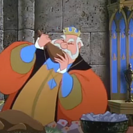 ...fails to depict women actually eating the food they prepare / which is prepared for them, while male characters do indulge more freely. Right before the two kings (and the minstrel) get hilariously drunk -- Disney today would never! -- we see King Hubert partaking of the feast on the table. It is worth pointing out that there is a stark visual difference between King Hubert (shown above, chomping on a turkey leg) and King Stefan, who is taller, leaner, and more lanky. It's also worth noting that we only see the...rounder King Hubert eat, not King Stefan. (And sure. If we wanted to do some armchair diagnosing, we could argue that Stefan is likely anxious over the return of his cursed daughter, whereas Hubert is only looking forward to the engagement party. But that's all speculation.) Similarly, Aurora never gets to eat the birthday cake Fauna prepares. When she returns to the cottage, flushed with excitement about meeting 'the stranger from the woods' (which is super creepy out of context), her aunts break the news that she's a princess, and engaged, and going home that night. Understandably, Rose breaks down crying and runs upstairs to fling herself on the bed and sob -- she is just 16 -- leaving the beautiful birthday cake untouched.